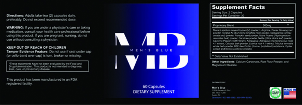 - Men's Blue is a line of natural health products designed specifically for men that offer a range of benefits for overall health and wellness. In particular, Men's Blue products have been found to be effective in helping men manage erectile dysfunction, a common condition that affects many men. This is achieved through a combination of healthy lifestyle choices, dietary modifications, and daily supplements of Men's Blue products.